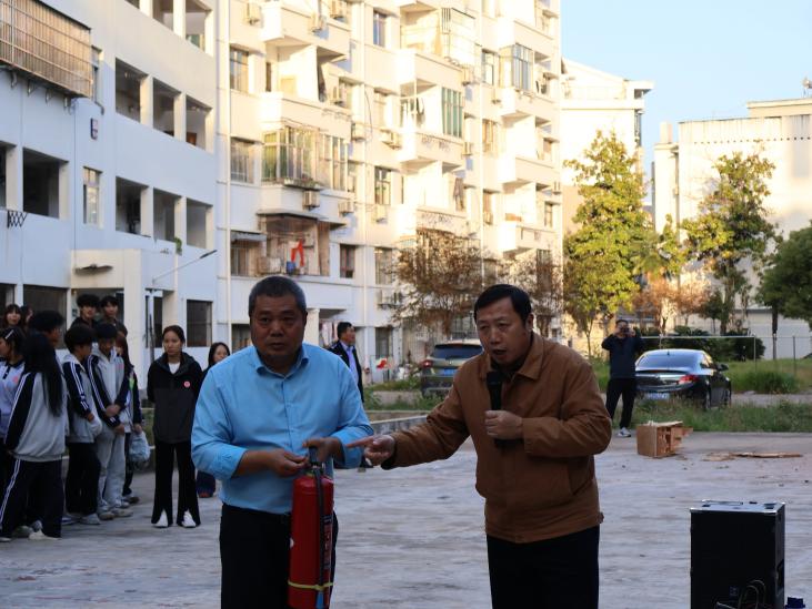 疏散完成后,学校保卫处消防科工作人员讲解了灭火器的具体使用方法,消防栓的使用原理与操作步骤,通过“提,拔,握,压”四步口诀拆解实操要点,并邀请师生亲自上场演练,确保大家熟练掌握灭火技能,现场学习氛围浓厚。