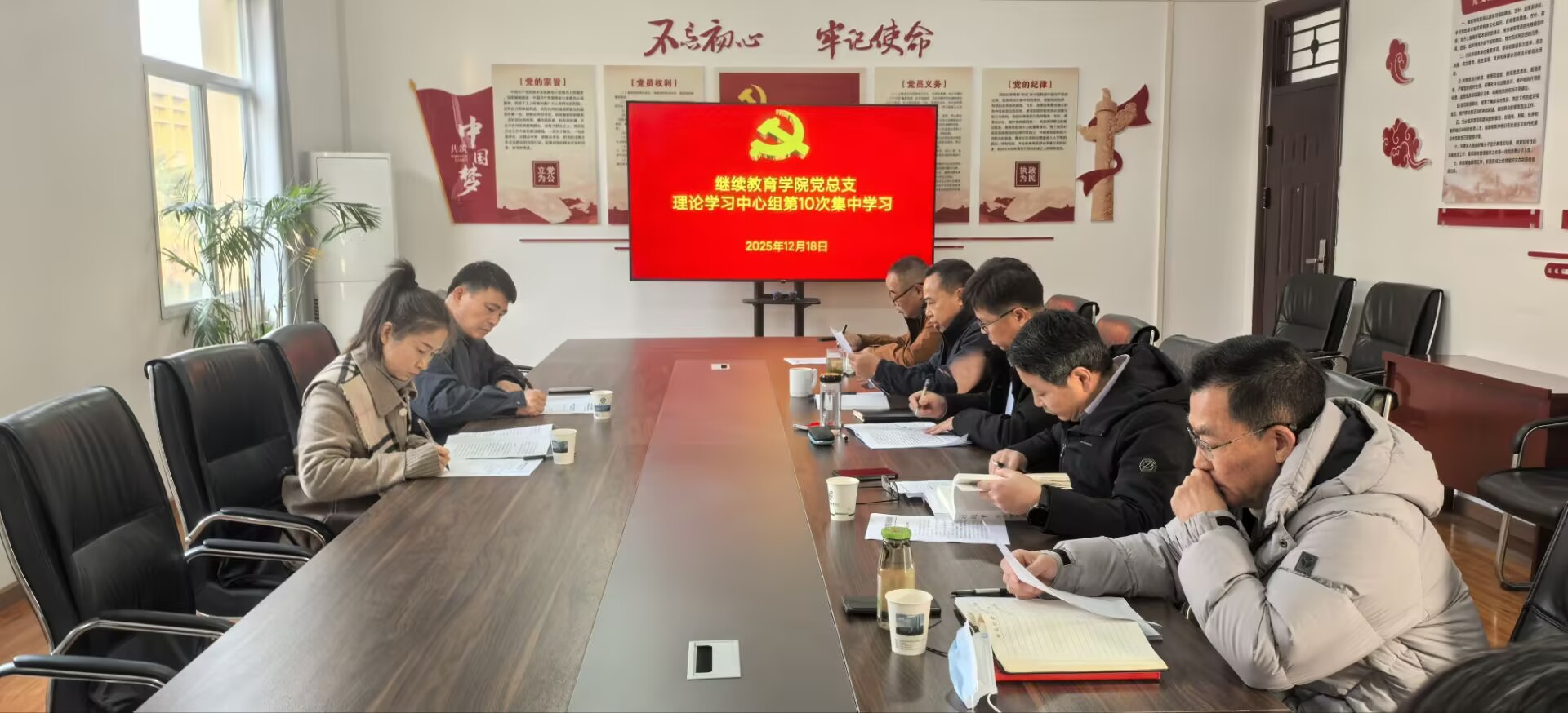 为深入学习贯彻党的二十届四中全会精神和《习近平谈治国理政》第五卷,切实将理论学习成果转化为推动继续教育高质量发展的实际成效,12月18日下午,学院党总支理论学习中心组于西校区笃行楼306会议室举行第十次集中学习。学院党总支书记曹学锋主持学习会,学院领导班子成员参加集中学习活动。教育学院党委书记钟劲松、李时珍中医药学院党总支书记李争婕莅临旁听指导。